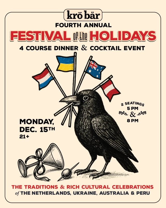 Simply book a standard reservation through our website and you’ll be all set to enjoy a wickedly festive cup of cheer, crafted the only way Kro Bar knows how.